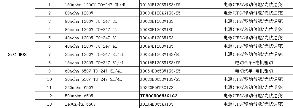 XD500B065AG1G3 SiC MOS 500mohm 650V 電源(UPS/移動儲能/光伏逆變)