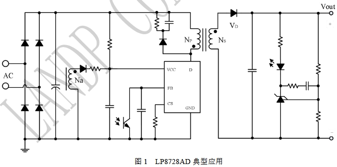 充分考慮系統(tǒng)的音頻噪聲,LP8728AD 設定芯片的最小工作頻率 FMIN,為了解決輕載或空載狀態(tài)下能量平衡的情況,采用打嗝模式,降低開關周期次數(shù)。當 VFB 電壓下降到 VSKIPIN(典型值 1.0V)時,進打嗝模式,不出開關脈沖;當 VFB 電壓上升到 VSKOUT(典型值 1.1V)時,離開打嗝模式,出開關脈沖。打嗝模式能有效的提升系統(tǒng)效率和降低待機功耗。