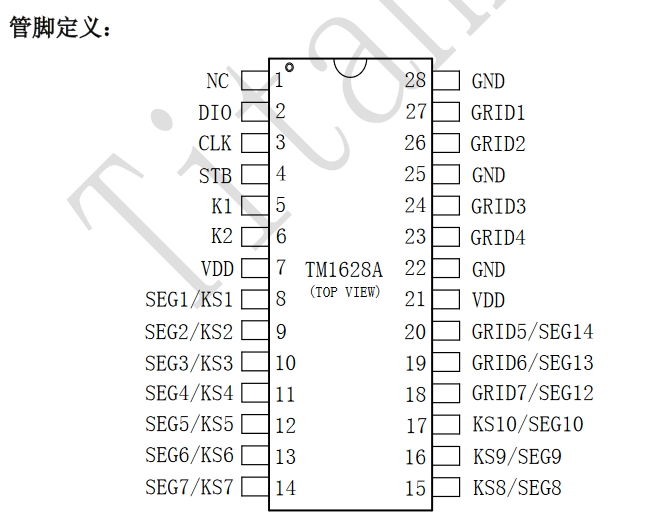 TM1628天微SOP28封裝 帶鍵盤掃描接口的LED驅(qū)動控制專用IC
