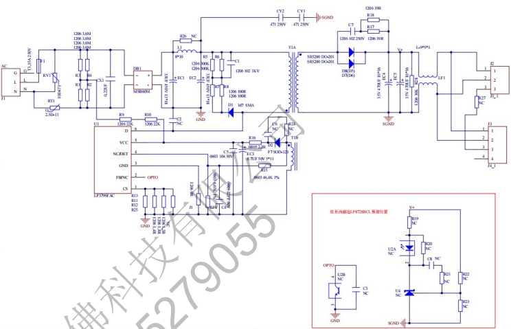 LP3799FAC內(nèi)部集成大于 650V 高壓功率管,采用特有的檢測方式和算法,系統(tǒng)可以工作在恒壓和恒流兩種狀態(tài)。LP3799 采用原邊反饋控制方式,可省略光耦和TL431,可以工作在 DCM 和 CCM 兩種工作方式。