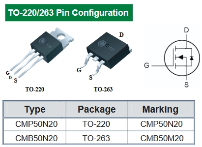 CMP50N20提供兩種封裝形式:TO-220和TO-263。TO-220封裝是一種常見的功率器件封裝形式,具有良好的散熱性能和較小的尺寸,適用于大多數功率應用。TO-263封裝則是一種更先進的封裝形式,具有更高的散熱能力和更好的電氣性能,適用于對散熱和性能要求更高的應用場景。兩種封裝形式都具有良好的機械穩定性和可靠性,能夠滿足不同用戶的需求。