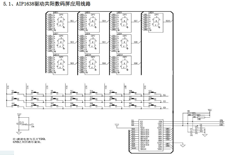AIP1638提供CLK、DIO、STB等串行接口,支持高速數據傳輸。這種串行接口設計不僅簡化了電路連接,還提高了數據傳輸的效率和穩(wěn)定性,使得AIP1638能夠與微控制器等外部設備無縫對接,實現復雜的控制功能。