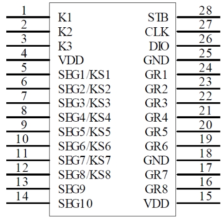 | 1-3 | K1-K3 | 鍵掃數據輸入,輸入數據在顯示周期結束后被鎖存 |