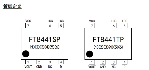 FT8441TP 采用 SOP7 封裝形式,其管腳定義清晰明確,便于用戶進行電路設計和焊接操作。具體管腳定義如下: