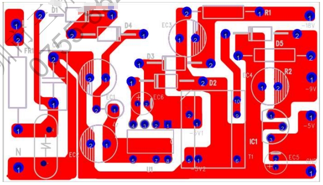 PCB設計對于電源的性能和穩定性至關重要。本方案采用單面板設計,元件分布合理,布線簡潔明了。以下是PCB的頂面和底面布局圖:
