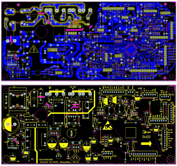 在布線方面,電源輸入端和輸出端的走線盡量加粗,以降低線路阻抗,減少電壓降。同時,高頻信號線和敏感信號線之間保持足夠的間距,避免信號干擾。此外,PCB還設置了足夠的接地平面,以提高電源的抗干擾能力。