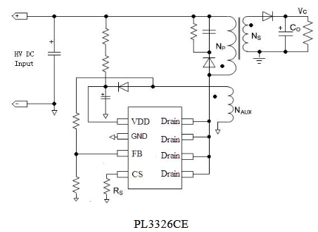 內置高集成度功率MOSFET:PL3326CE內部集成了高壓功率MOSFET,減少了外部元件數量,降低了PCB面積和系統成本。