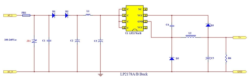 LP2178A:核心芯片,負(fù)責(zé)將輸入直流電壓轉(zhuǎn)換為穩(wěn)定的5V輸出。