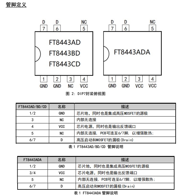 ? FT8443ADA:入門款,300 mA 穩(wěn)態(tài)輸出,650 V 內(nèi)置 MOS,DIP-7 散熱焊盤小,適合小家電、智能開關(guān)等成本敏感場景。