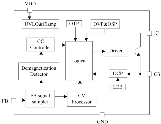 PL3379C同時(shí)具有多種保護(hù)功能:逐周期峰值電流檢測(cè)、VDD欠壓/過(guò)壓保護(hù)、輸出過(guò)壓保護(hù)、輸出短路保護(hù)和過(guò)溫保護(hù)等。