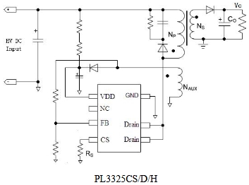 PL3325C 同時具有多種保護功能:逐周期峰值電流檢測、欠壓保護、過壓保護等。