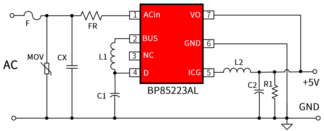 BP85223AL晶豐明源SOP7封裝5V 150AM非隔離開(kāi)關(guān)電源IC