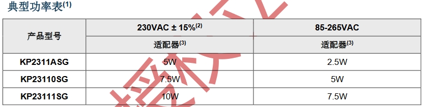 KP2311ASG:這款芯片設計用于5W的輸出功率,在230VAC ± 15%的條件下,能夠提供2.5W的功率。它適用于需要較低功率輸出的應用,如小型充電器。