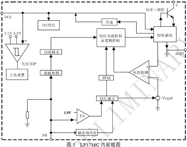 LP3716C是一款集成了BJT的電源管理芯片,適用于12W以下的隔離方案。它具備內(nèi)置啟動電路、高精度的固定峰值電流、輸出線損補(bǔ)償技術(shù)、輸出短路保護(hù)、過壓保護(hù)、VCC欠壓保護(hù)、FB腳上電阻開路保護(hù)以及過溫保護(hù)等多種功能。