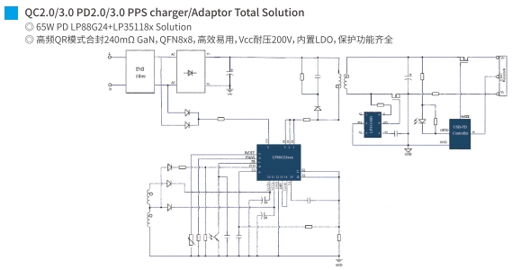 在現代電子設備中,快速充電技術已成為提升用戶體驗的關鍵因素之一。65W PD(Power Delivery)快充方案,以其高效率、高兼容性和高安全性,成為眾多電子設備制造商的首選。本文將深入探討兩種主流的65W PD快充方案:LP8776CD+LP35116PT和LP88G24+LP35118X,分析它們的技術特點和應用優勢。