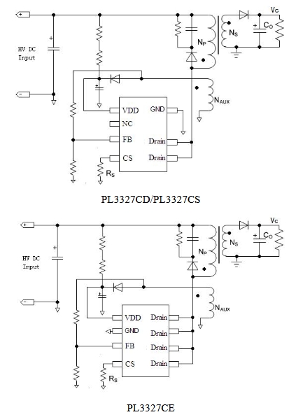 盡管兩款芯片都適用于小于18W的AC/DC反激式開關電源,但它們的封裝差異可能會影響它們在特定應用中的適用性。例如,PL3327CE的SOP8封裝可能更適合于對空間要求較高的便攜式設備,如手機充電器和數碼相機充電器。而PL3327CD的DIP7封裝可能更適合于對成本敏感且空間要求不那么嚴格的應用,如一些小型電源適配器。