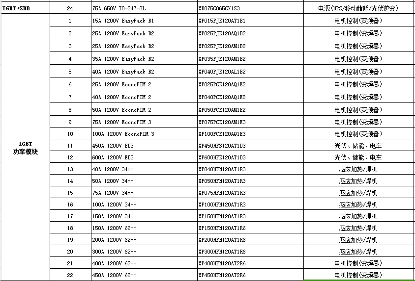 這兩款IGBT功率模塊在多個領域有著廣泛的應用: